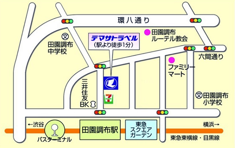 | 鉄 道 | 東急東横線/目黒線 田園調布駅下車 徒歩約1分 |